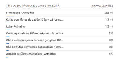 Outra pergunta fundamental é saber quais as páginas mais visualizadas, pelos visitantes do site. Com base nessa informação conseguimos, gerir melhor o stock de produtos, pois conseguimos claramente entender quais são os mais procurados e consequentemente mais vendidos.